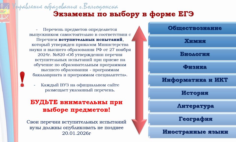 Для получения аттестата выпускники текущего года сдают обязательные предметы — русский язык и математику. Другие учебные предметы ЕГЭ выпускники сдают на добровольной основе по своему выбору для поступления в образовательные организации высшего образования.