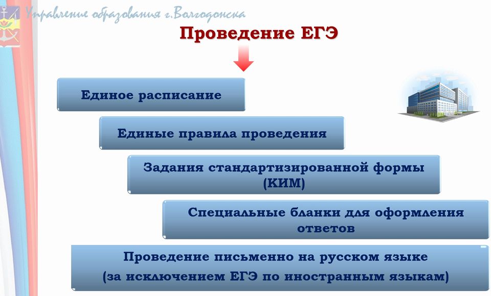 ЕГЭ проводится письменно на русском языке (за исключением раздела «Говорения» в ЕГЭ по иностранным языкам).