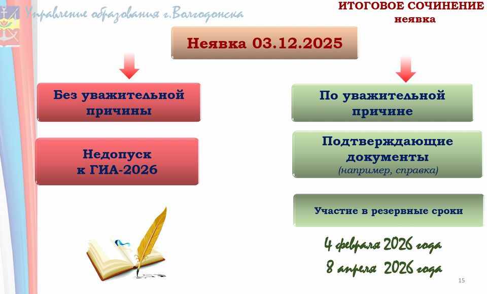 Информируем выпускников 11 класса, о том, что прием заявлений на участие в государственной итоговой аттестации по образовательным программам среднего общего образования в 2026 году, в том числе в форме ЕГЭ, осуществляется до 1 февраля 2026 года. Прием заявлений на участие в государственной итоговой аттестации по образовательным программам среднего общего образования от выпускников 11 класса осуществляется заместителем директора по УВР Ю.Я.Поршиной (каб.205)