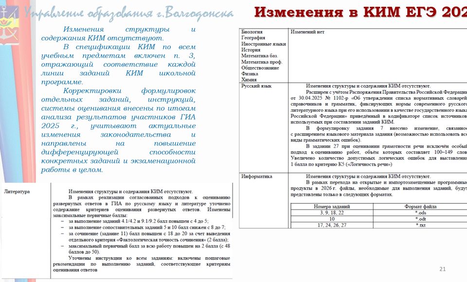Планируемые изменения в КИМ ЕГЭ 2026г