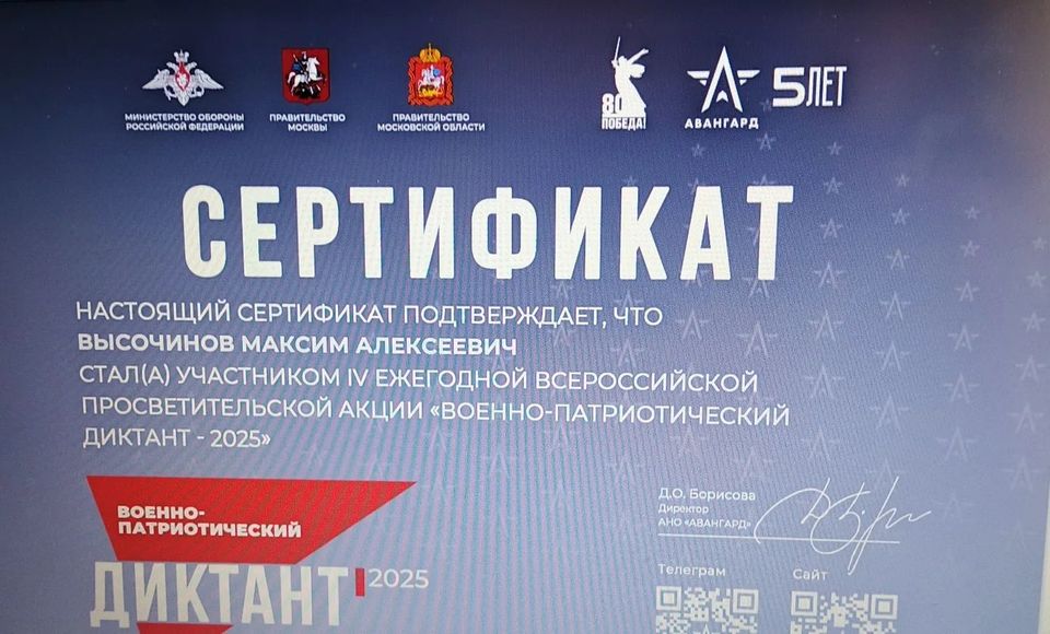 С 01.12. 2025 по 10.12.2025 в онлайн формате проходит lV Ежегодная всероссийская просветительская акция " Военно- патриотический диктант- 2025". 33 обучающихся МБОУ СШ 23 г. Волгодонска приняли участие в данной акции, показав хорошие результаты.